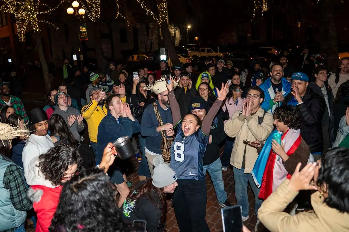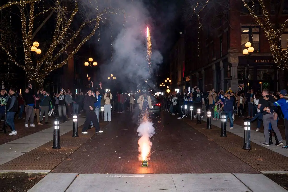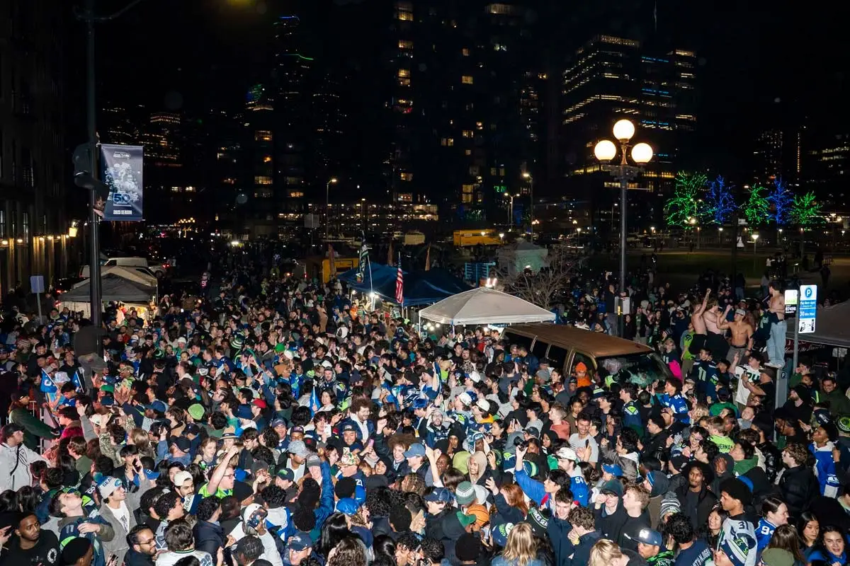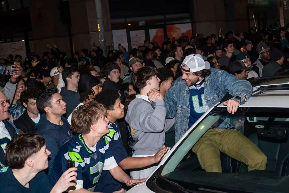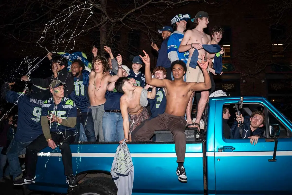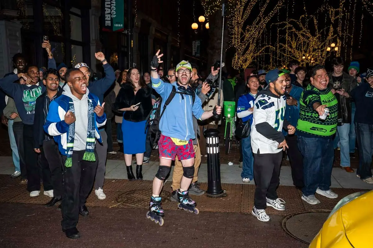 Seattle Seahawks fans celebrate Super Bowl win